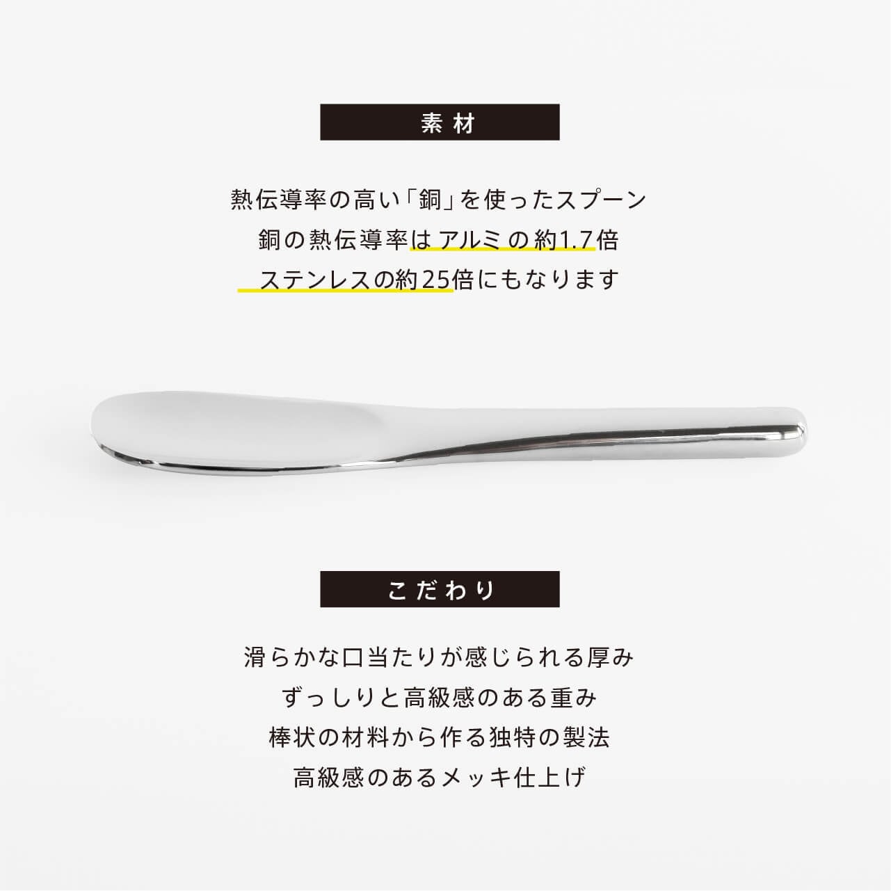 ■ 材質 : 銅製アイスクリームスプーン:銅/ピューターメッキ (食品衛生法・食品、添加物等の規格基準適合)