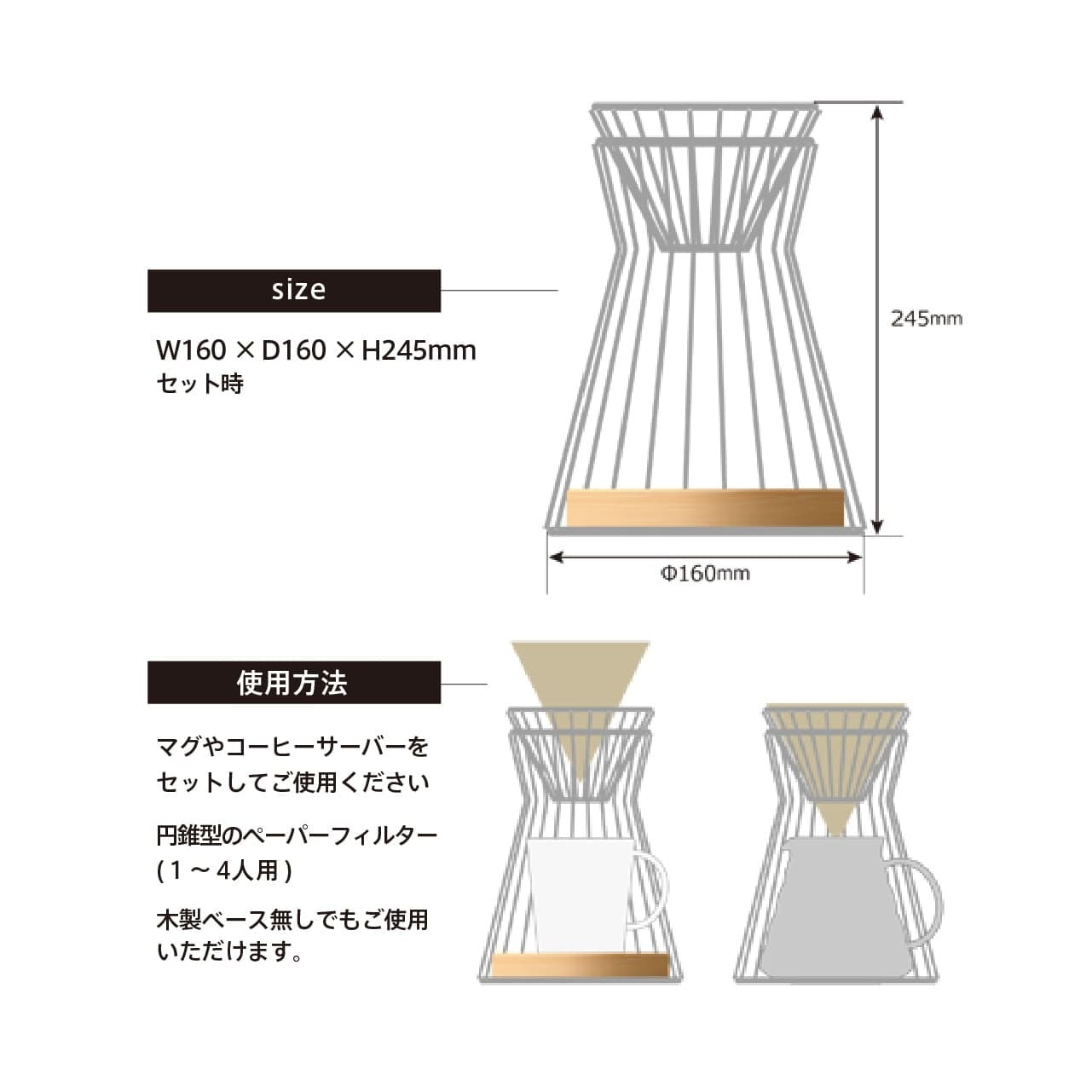 ペーパーフィルターは市販の円錐形ペーパーフィルター1〜4杯用、またはウェーブ型のフィルターをご使用ください。台形(舟形)ペーパーフィルターはご使用できません。