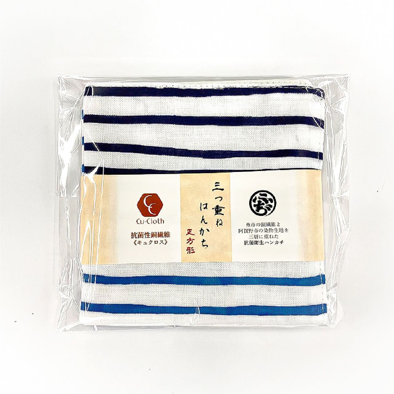 ■ 商品名 : Cu-Cloth ハンカチ 正方形24×24㎝ 【よろけ縞】