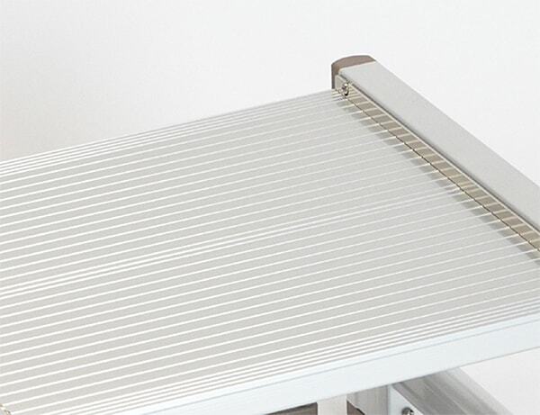 天板は清潔で丈夫なアルミニウム製。耐久性が高く、汚れが付着した際のお手入れも簡単です。