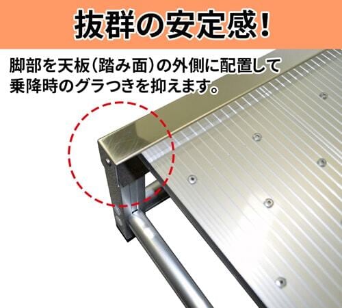 ● 天板両側には段差を設け足の踏み外しを防ぎます。