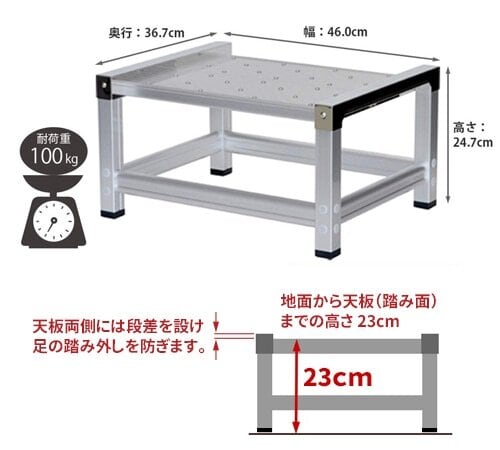 ● 地面から天板(踏み面)までの高さは約23cmです。