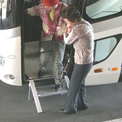 バスに乗降する際の段差を緩和する「折畳み型」のステップ