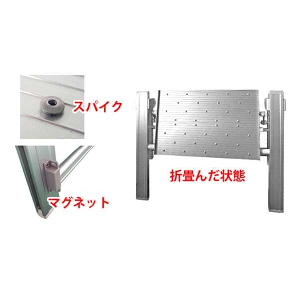 ● 折畳み型で収納場所もとらず、脚支柱に強力なマグネット付きで乗車口に固定できます。