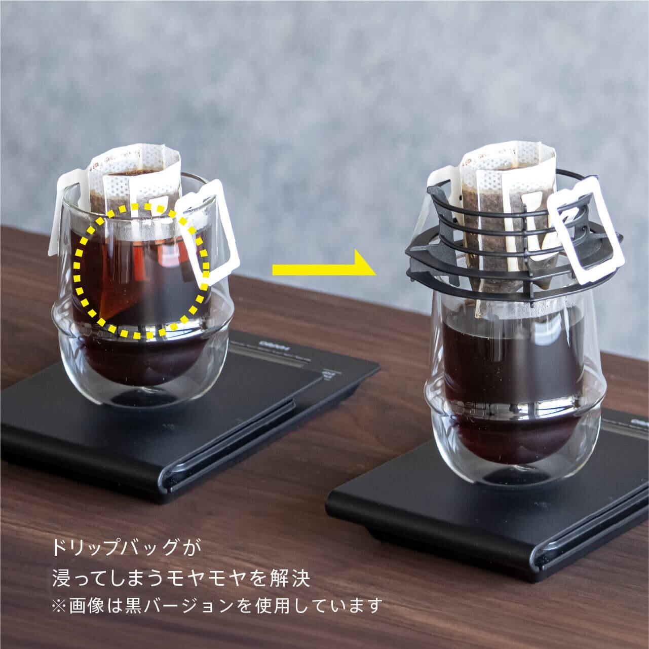 幅広いカップやドリップバッグの形状に対応し、しっかりとホールドして倒れにくく、安定した抽出をサポートします。